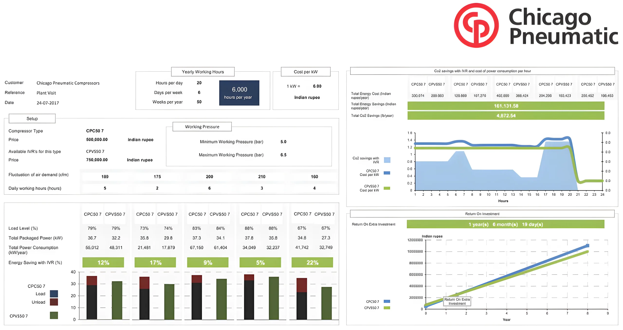 Chicago Pneumatic has developed the Energy cutter, a tool that calculates yearly savings from an IVR compressor.